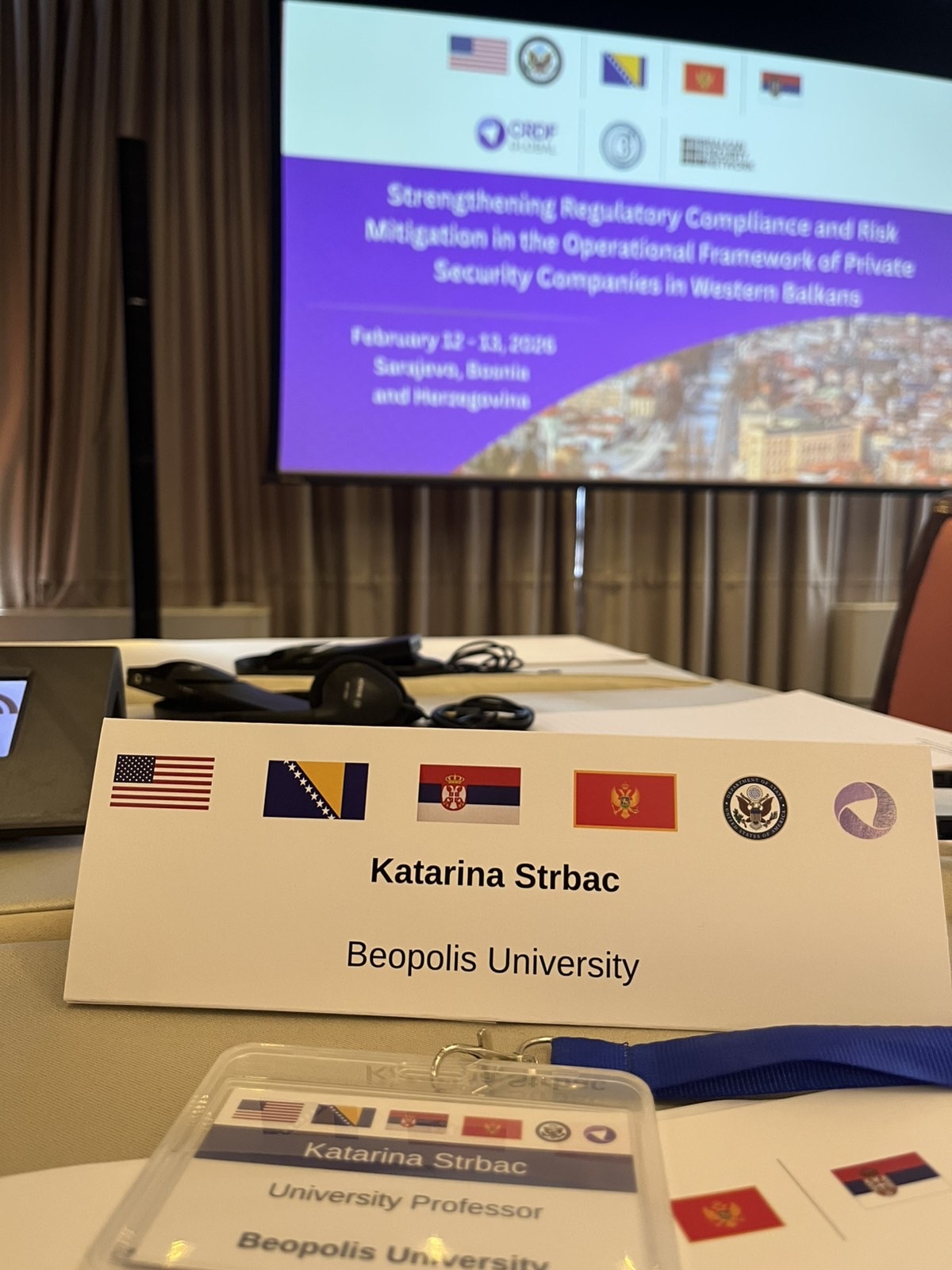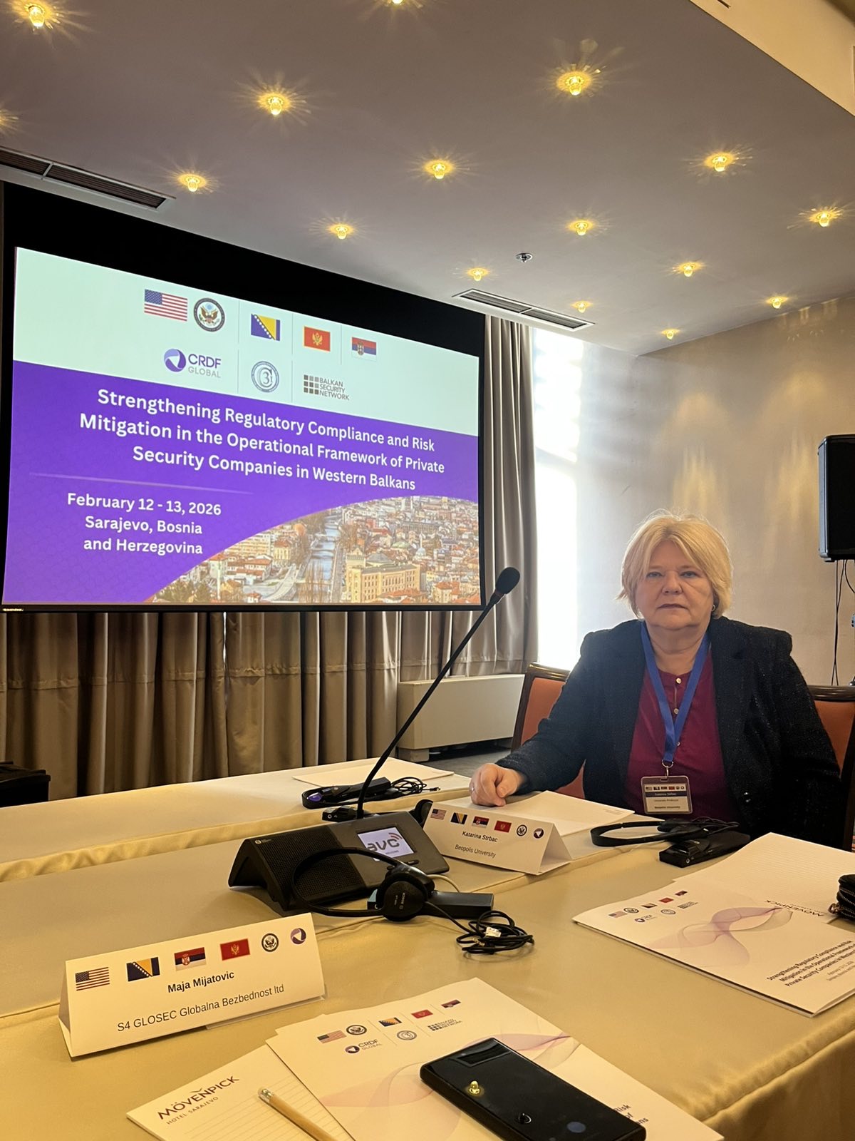 Prof. Dr. Katarina Štrbac is participating in the Conference - Strengthening regulatory compliance and risk mitigation in the operational framework of private security companies in the Western Balkans, which is being held on February 12 and 13, 2026 in Sarajevo.